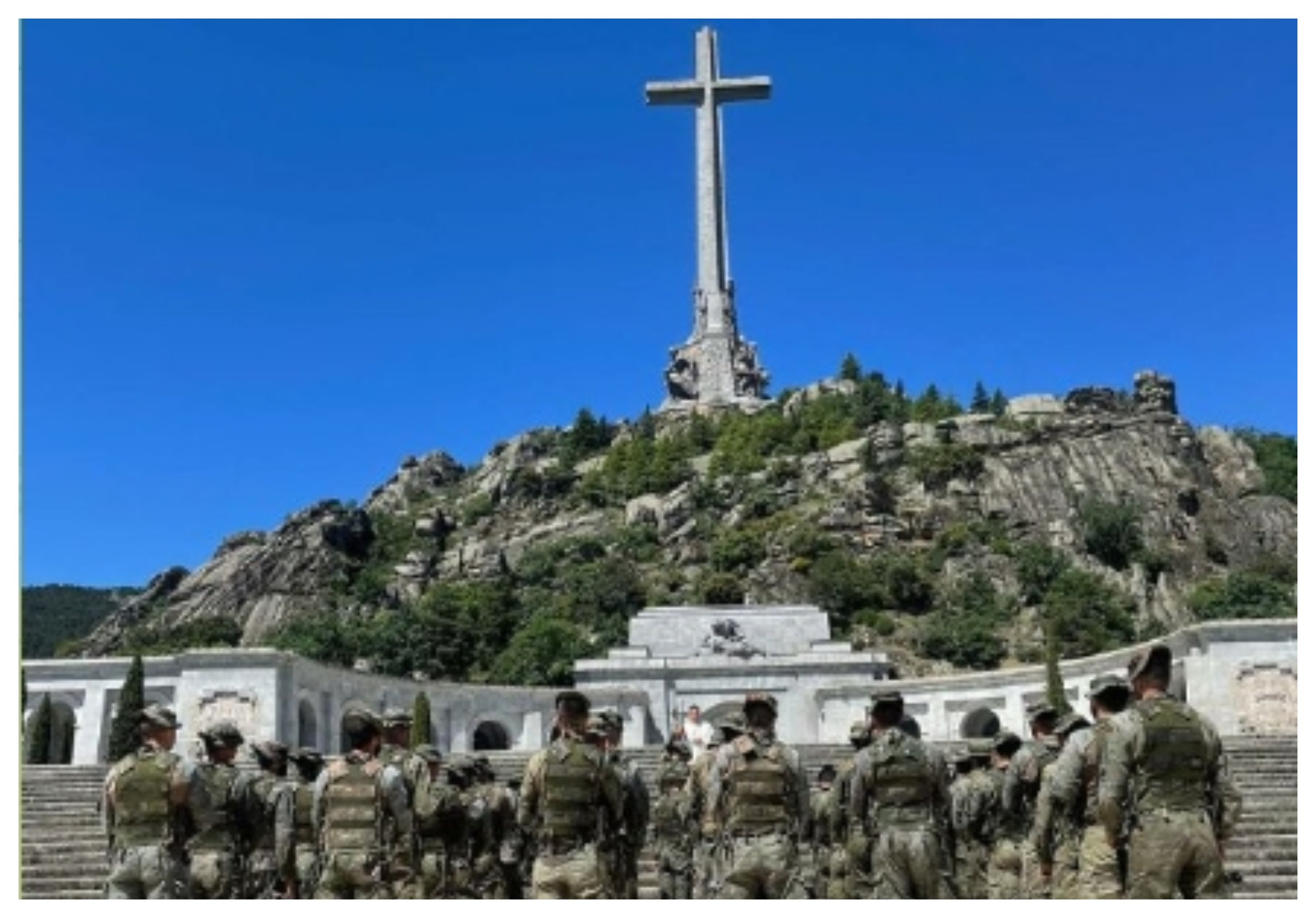 Una unidad militar bendijo su banderín en el Valle de los Caídos. Naturalmente, se ha abierto una investigación sumarísima y un diario progresista ha titulado que los militares bendijeron su banderín ante "La cruz franquista".