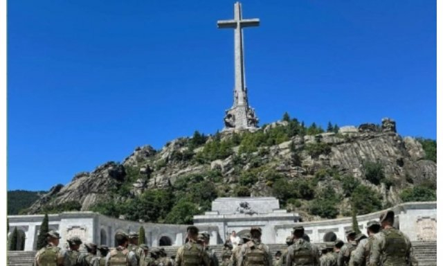 La verdad es que el suceso es confuso. La foto pertenece a una asociación, por mí desconocida, llamada Ciudadanos de Uniforme y que por el siguiente texto que acompaña a una de sus instantáneas, no parece que esté muy por la labor: "Esto es lo que ocurre cuando nadie les dice a los capitanes que las compañías no son "suyas", sino de las Fuerzas Armadas, que representan a todos los españoles, no a ninguna religión o ideología". ¿Puede tratarse de un montaje progre? Además, los benedictinos, que no se han marchado, no saben nada del acto pero sorprende este rasgado de vestiduras en un Gobierno que hizo algo grande: sacó de la tumba a un cadáver de hace 45 años, ¡Grande eres, Pedro!