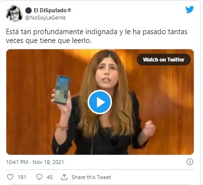 La diputada de Más Madrid, Loreto Arenillas, ha protagonizado una encendida defensa de la lucha contra el ciberacoso que sufren las mujeres. Para apoyar su denuncia no ha dudado en mostrar la foto de un pene en su móvil. "¿Saben lo violento que es recibir una foto de estas características? A este hombre, a los 10 minutos se le va a haber olvidado, pero a nosotras nos desagrada, nos genera un malestar tremendo, una violencia inexplicable", ha añadido la diputada, que ha lamentado que es como "si fuera normal quedarnos calladas después de haber recibido un pene".
