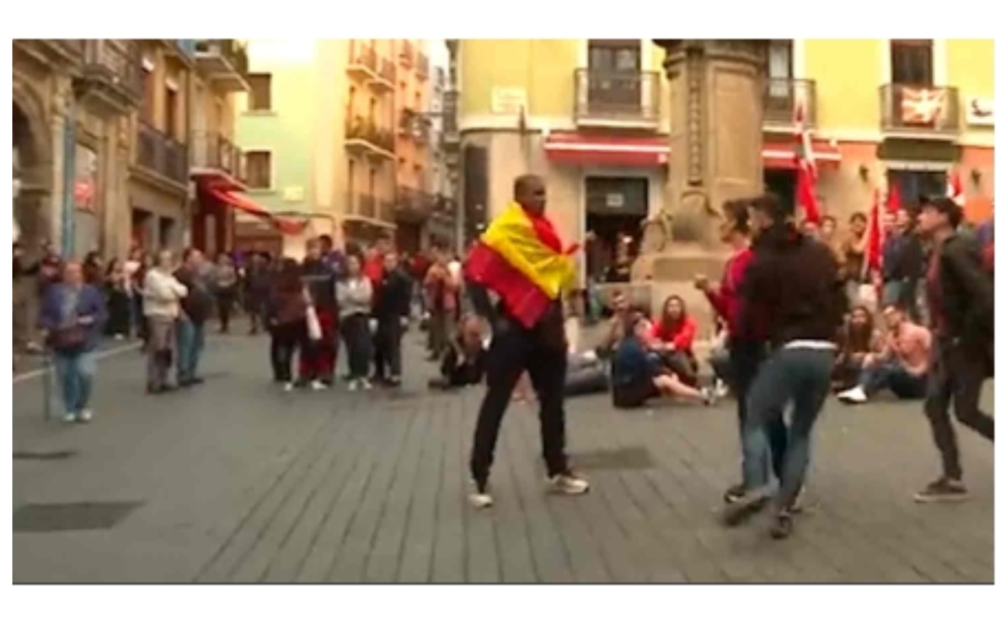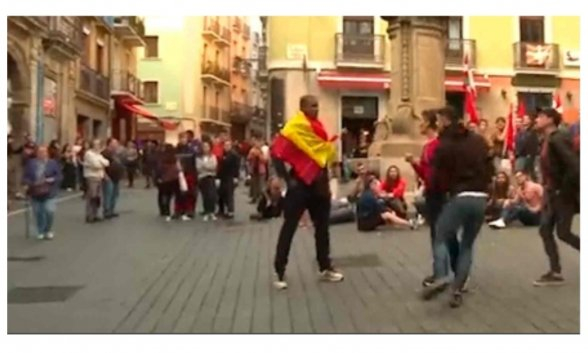 Día de la Hispanidad, un cubano se muestra en pleno centro de Pamplona con una bandera española. De inmediato, los sin cabeza pero con berza empiezan a agredirle. El vídeo lo dice todo pero yo sólo quiero resaltar tres detalles, que revelan el ambiente de violencia -vulgo, mala leche- y silencio cómplice que reina en mi querida Navarra: