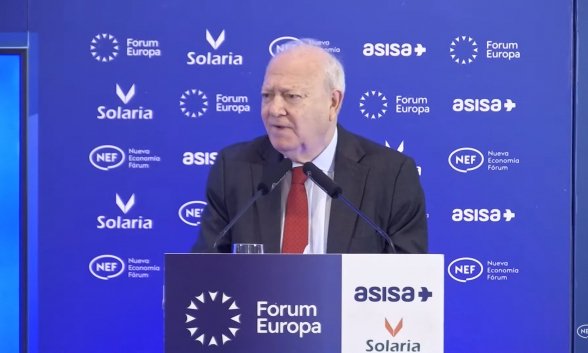 Habla en Madrid. Hotel Mandarín Ritz, Miguel Ángel Moratinos, el Alto -extraordinariamente alto- Representante para la Alianza de Civilizaciones, de Naciones Unidas, apadrinado por ZP.