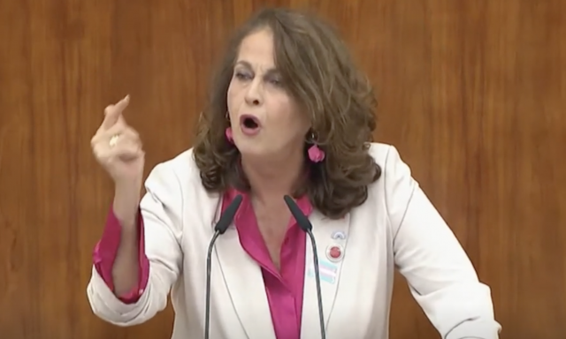 "Esto es terrorismo hacia las personas trans", asegura, "Quiero decir una cosa a todas y todos ustedes, diputados y diputadas del Partido Popular y Vox. Todos y cada uno, hoy, cuando apretéis el botón para votar esta infamia, por cada insulto que recibamos, por cada paliza que nos den, por cada asesinato que se cometa, por cada persona trans que acabe con su vida, cuando aprieten ese botón, pasarán a tener las manos manchadas de sangre. No lo olviden. Esto es terrorismo hacia las personas trans".