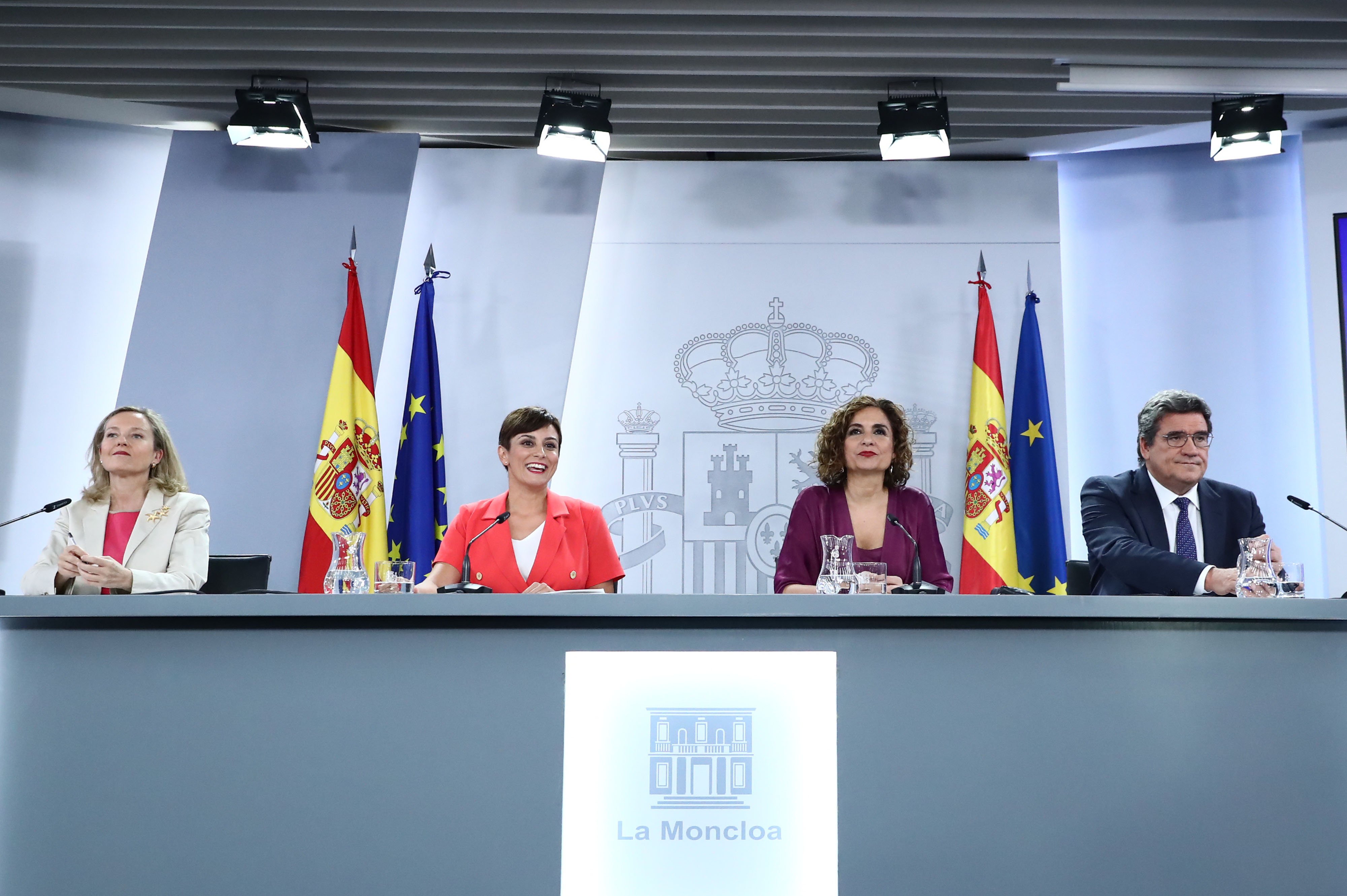 Consejo de Ministros del martes 19 de julio, rueda de prensa posterior, presentes para "dar cuenta de los acuerdos aprobados": la ministra Portavoz, Isabel Rodríguez, junto a la vicepresidenta primera y ministra de Asuntos Económicos y Transformación Digital, Nadia Calviño; la ministra de Hacienda y Función Pública, María Jesús (Marisu) Montero; y el ministro de Inclusión, Seguridad Social y Migraciones, José Luis Escrivá. Un Consejo de Ministros con un marcado "carácter económico", y coincidente con el día en que el Supremo confirma los 6 años de cárcel para Griñán y los 15 de inhabilitación para Chaves, por el caso ERE. Ninguno de los cuatro ministros se ha pronuciado al respecto, pese a ser preguntados una y otra vez: aseguraban que hasta que no se conozca la sentencia, los votos particulares y las motivaciones en septiembre, prefieren no pronunciarse. Varios medios apuntan a indulto, la Ejecutiva ni confirma ni desmiente. Pero Pilar Alegría, nueva portavoz del PSOE, afirma que el partido defiende la honestidad de Griñán y Chaves: "Pagan justos por pecadores".