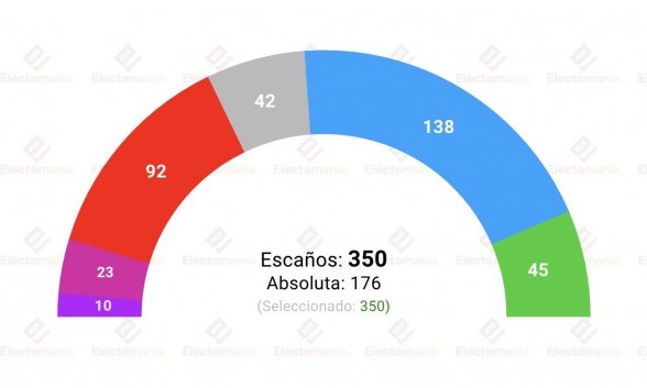 La derecha 🔵 gobernaría al superar la suma de PP 💧 y Vox 🥦 los 180 diputados.