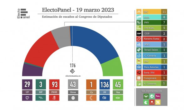 Por otro lado, electomanía ha publicado su Electopanel: "Tamanes no suma para Vox", según los datos. El PP conseguiría un 32,6% de los votos y 136 escaños, frente al PSOE que obtendría el 24,6% y 93 representantes. Vox se quedaría como tercera fuerza con el 14,9% y 45 asientos y Unidas Podemos caería al 11,3% y 29 representantes. Tendremos que esperar una semana más para saber si la Moción de Censura de Vox tiene efectos en los resultados.