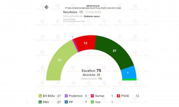 A continuación viene el PSOE, que pasa de 10 a 12 asientos en la cámara. El PP también sube de 6 a 7, mientras Podemos, que tenía seis, desaparece de la cámara vasca y su sustituto, el Sumar de Yolanda Díaz, se queda en un diputado. Finalmente, Vox, el único partido al que se le puede considerar católico en toda la cámara vasca, también repite, con 1 diputado, obtenido por los pelos.