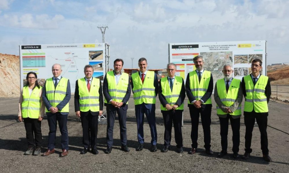 El presidente del Gobierno, Pedro Sánchez, y el ministro de Transportes y Movilidad Sostenible, Óscar Puente, han visitado este miércoles las obras del primer tramo de la autovía A-58 situado entre Cáceres y Río Ayuela, que conectará Cáceres y Badajoz. La inversión estimada para esta actuación asciende a 100 millones de euros (IVA incluido).