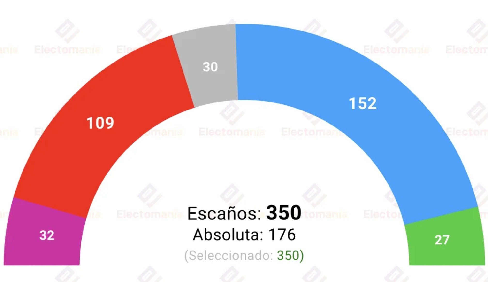 Eso sí, lo haría con un margen tan estrecho que podría considerarse empate técnico entre las dos formaciones: el PP sacaría el 31,4% de los votos, frente al 31,2% de los socialistas. La diferencia estaría en el número de escaños: Feijóo sacaría entre 122-140 frente a los 115-135 de Sánchez. ¿Que son unas horquillas excesivas? Efectivamente lo son, pero le permiten anunciar que, en la horquilla más alta, el PSOE podría alcanzar mayoría absoluta con Sumar.