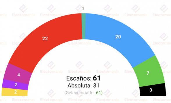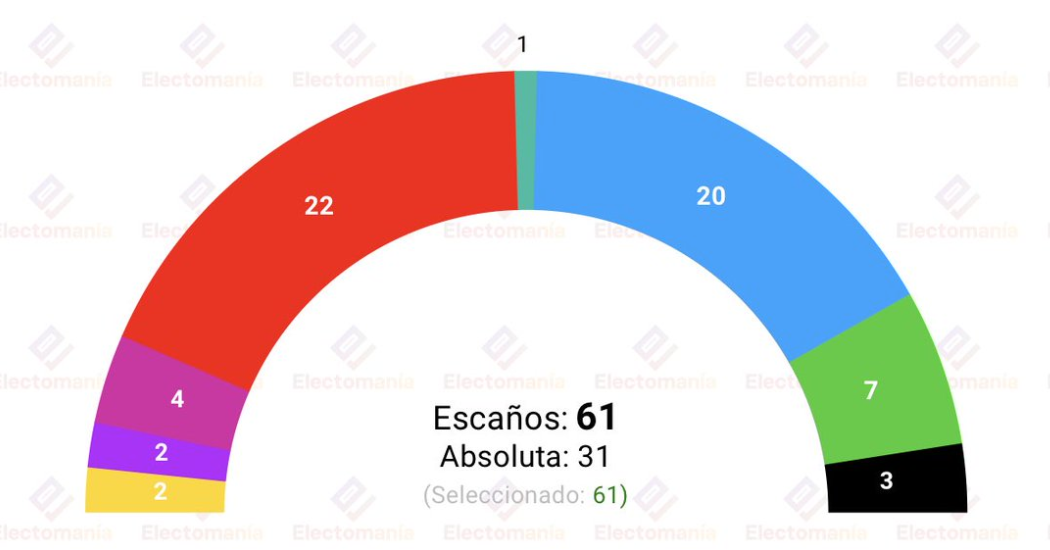 El sondeo del CIS ha sido recogido por Electomanía y proyecta unos 22 escaños para el PSOE, 20 para el PP, 7 para Vox, 4 para Sumar, 3 para SALF, 2 para Podemos, 2 para Ahora Repúblicas y uno para Junts.