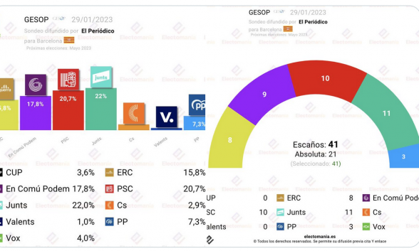 Así las cosas, las combinaciones para lograr 21 concejales están abiertas. Una de ellas podría ser un pacto entre Junts 11 - PSC 10. Y otra, una triple alianza de izquierdas (PSC 10, Ada Colau 9, ERC 8).