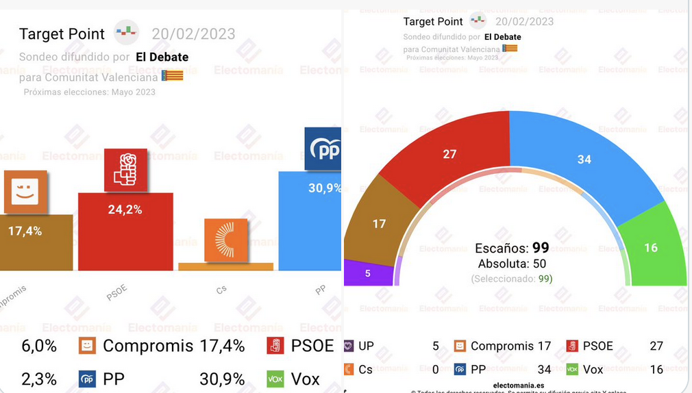 El Debate ha publicado una encuesta de Target Point sobre las elecciones en la Comunidad valenciana.