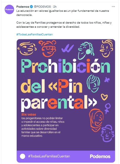 A todo esto, vendido como equiparación de ventajas entre las familias monoparentales como las familias parentales: como si la familia tuviera muchos derechos en España.