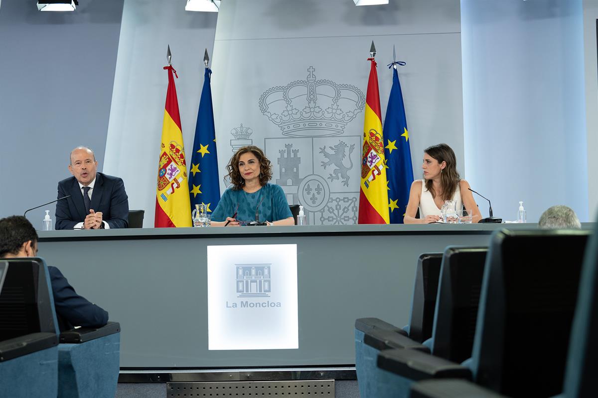 Consejo de Ministros del martes 29 de junio, festividad de San Pedro y San Pablo muy venerados en Moncloa. Salen a escena la ministra portavoz, Marisú Montero, el titular de Justicia, Juan Carlos Campo, el ministro más caradura de todo el Ejecutivo, natural de Cádiz, y la ministra de Igualdad, Irene Montero.