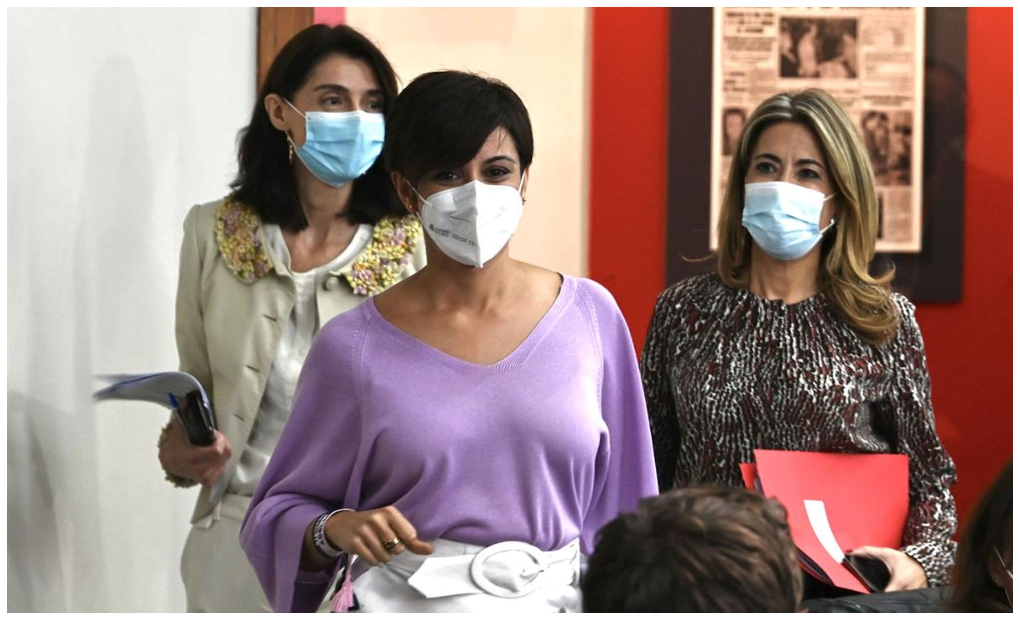 Consejo de Ministros del martes 19. La portavoz, Isabel Rodríguez, sale a escena, flanqueada por la ministra de Justicia, Pilar Llop y por la titular de transporte, Raquel Sánchez.