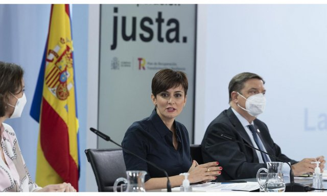 Consejo de Ministros. La ministra portavoz sale a escena acompañada de la titular de Industria, Reyes Maroto y del de Agricultura, Luis Planas.