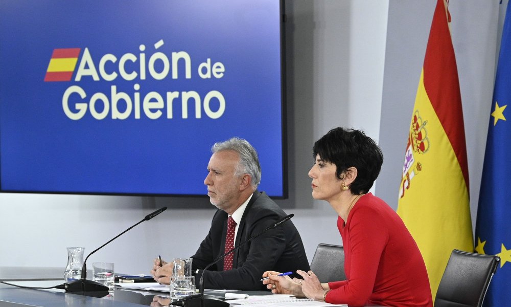 Consejo de Ministros del martes 3 de febrero. La ministra portavoz, Elma Saiz sale acompañada de Ángel Víctor Torres, el de la mentira democrática sobre la historia.