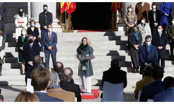 Pero centrémonos en el discurso de la presidenta del Congreso, Meritxell Batet, con motivo del Día de la Constitución... que es hablar de lo mismo. En la escalinata del Congreso, cumpliendo todo los protocolos sanitarios y con el sectarismo como guía y el lenguaje cantinflesco como norma, con un muy vigilante Sánchez al lado, que incluso tuvo el muy machista gesto de indicarle a la anfitriona del acto cuál era su lugar, antes de colocarse al lado, para asustarla con su presencia y no tolerar revisionismos. Todo de lo más bochornoso.