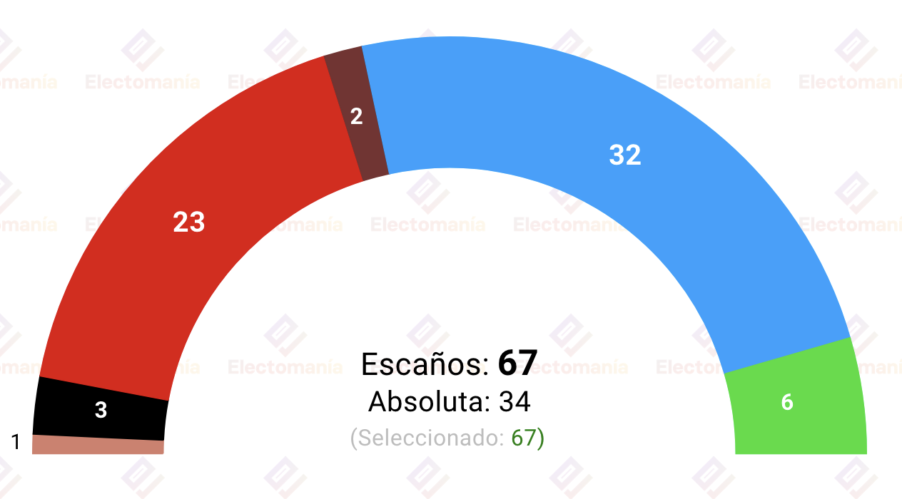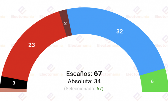 La mayoría absoluta se sitúa en los 34 escaños de un total de 67.