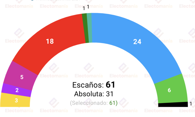 Así las cosas, cabe destacar el seguro triunfo del PP, con una horquilla entre 23 y 25 escaños (cuando en 2019 sacó 12).