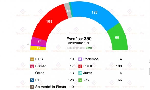 Así las cosas, el PP perdería diputados respecto al año 2023, al pasar de sus actuales 137 a unos 128.