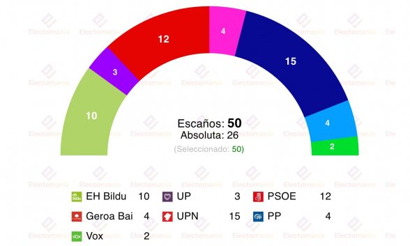 En Navarra, la mayoría absoluta se sitúa en los 26 escaños de un total de 50.