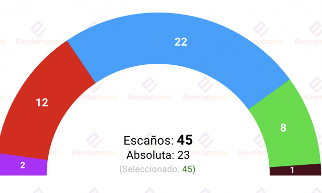 La mayoría absoluta en la región de Murcia se sitúa en los 23 escaños de un total de 45.