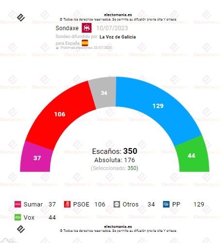 En cualquier caso, la coalición PSOE-Sumar lograría 150 diputados y necesitaría más apoyos para lograr una nueva investidura de nuestro líder.