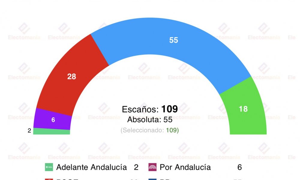 Un mes escaso para las elecciones andaluzas, y Moreno Bonilla sigue sin la absoluta asegurada. Al menos según los últimos sondeos y la encuesta de hoy elaborada por Sigma Dos para El Mundo, recogida por Electomanía: “el PP llega a la precampaña con la mayoría absoluta a tiro”. A tiro, pero en cualquier caso los resultados de los populares serían peores que los obtenidos en las pasadas elecciones cuando sacó 58 escaños, en mayo sin embargo la estimación es de 55-57 representantes.
