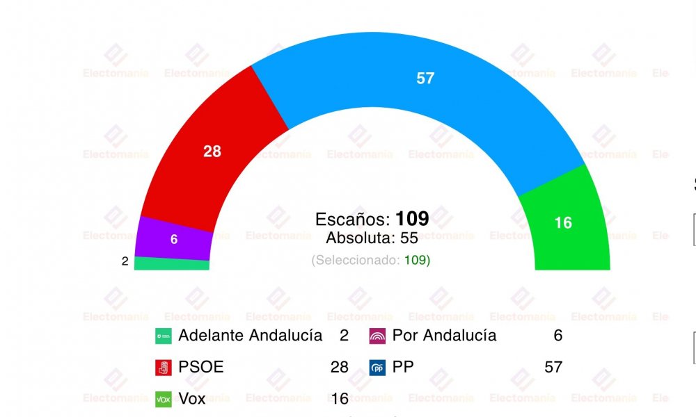 La conclusión es que el PP podría revalidar una mayoría absoluta, aunque con menos escaños que en las últimas elecciones andaluzas de 2022.