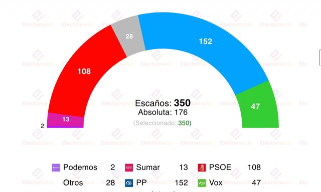 Por su parte, la web 'Electocracia' ha realizado un promedio de los últimos 4 sondeos elaborados entre el 11 y el 24 de julio, según el cual el PP obtendría ahora entre 150-152 diputados.