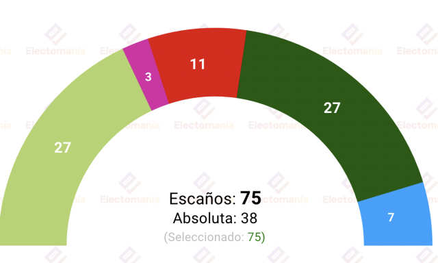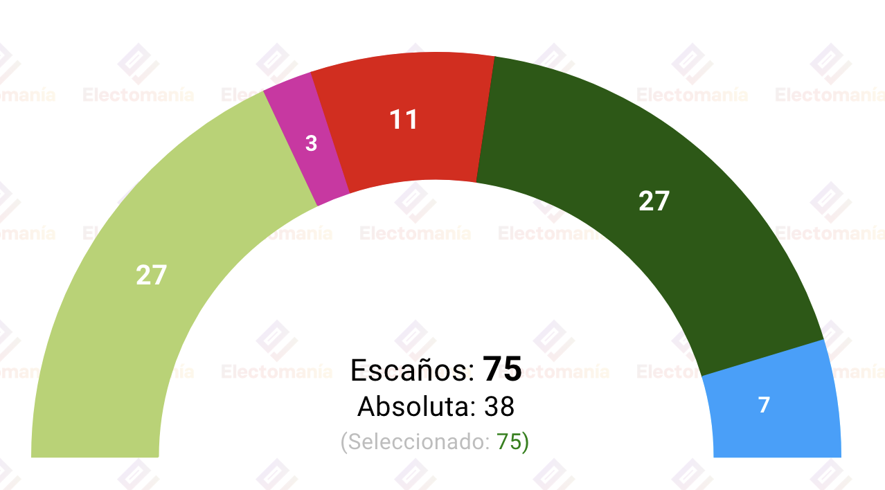 De un total de 75 diputados, la mayoría absoluta se sitúa en 38. Actualmente gobierna el país Vasco una coalición entre PNV (31) y PSOE (10).