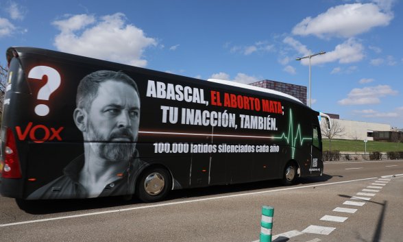 Y esta incoherencia y cambio de postura es la que denuncia Hazte Oír. En plena campaña por las elecciones autonómicas en Castilla y León ha lanzado una caravana de vehículos contra el líder del partido, con el siguiente mensaje: "100.000 latidos silenciados cada año. Abascal, el aborto mata; tu inacción también".