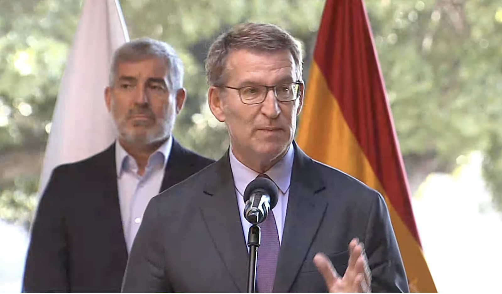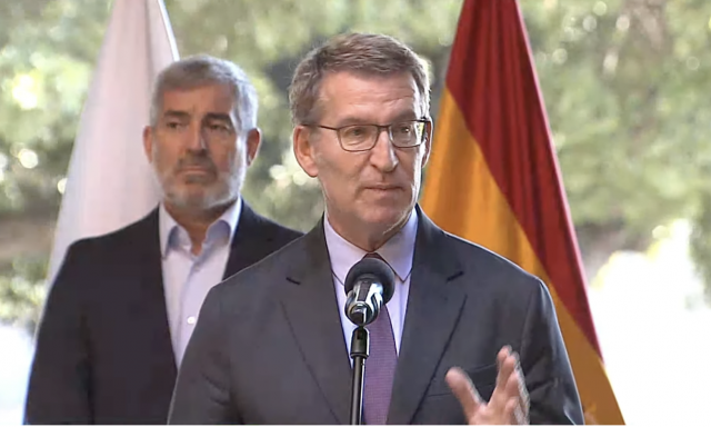 El presidente del PP y candidato a la presidencia del Gobierno, Alberto Núñez Feijóo, ha comparecido este miércoles en Tenerife tras entrevistarse con el presidente de Canarias y secretario general de Coalición Canaria (CC) Fernando Clavijo, como parte de las consultas que está llevando a cabo para recabar apoyos de cara al debate de investidura que se celebrará el 26 y el 27.