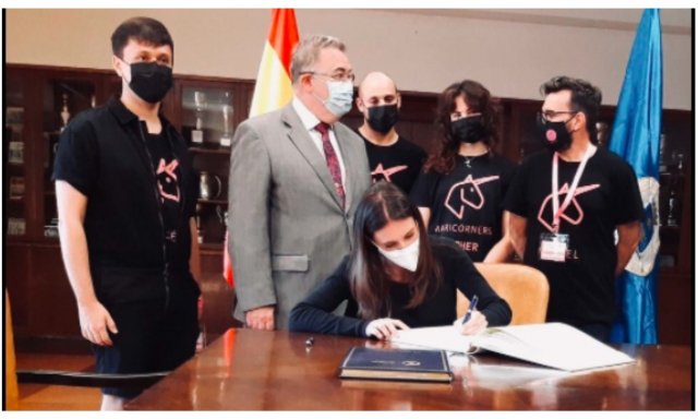 Pero en su cruzada por la igualdad, Irene no está sola. Le acompañan, por ejemplo, las MariCorners: cuatro profesores e investigadores de áreas muy diferentes (Historia, Lingüística, Arquitectura y Comunicación Audiovisual) que usan el unicornio rosa como seña de identidad. «Nos liamos la manta a la cabeza... El unicornio representa a todos los que nos salimos de la regla», dice a ABC su presidente, Manuel Sánchez.
