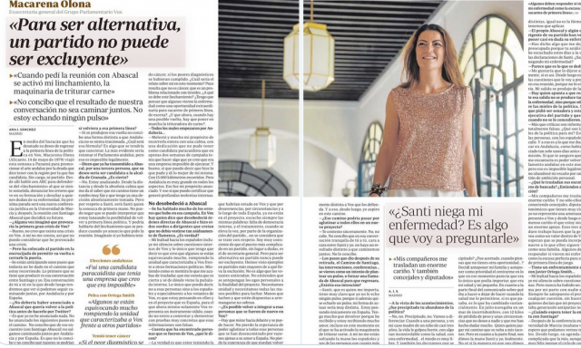 Hoy el diario ABC publica una entrevista con Macarena Olona, exafiliada de Vox.