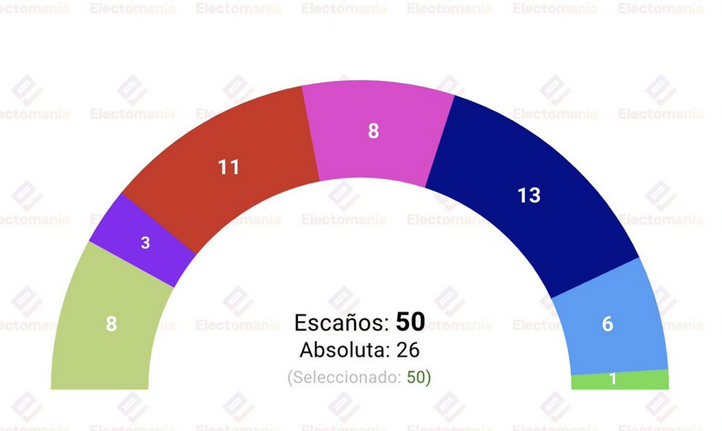 En Navarra, la mayoría absoluta se sitúa en los 26 escaños de un total de 50.