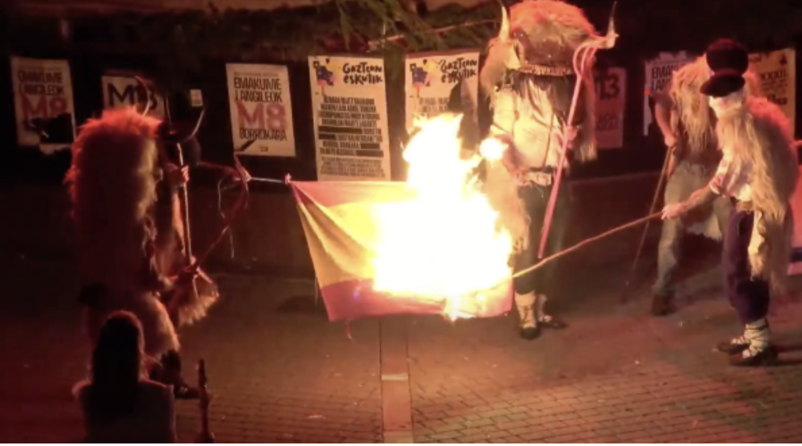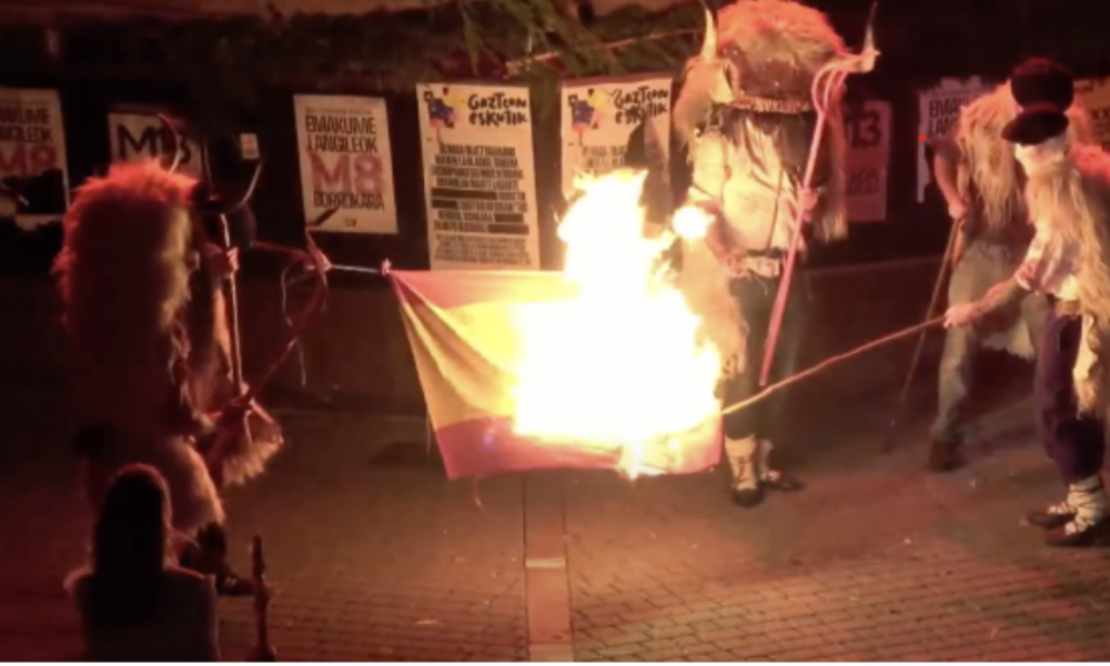 Durante la celebración del carnaval, la tarde noche del 4 de marzo, unos 'simpáticos' individuos, denominados en la jerga local 'momotxorros', ataviados con cuernos de toro, piel de oveja y cencerros -eso sí, tratando de ocultar su identidad-, procedieron a quemar una bandera de España y otra de Israel.