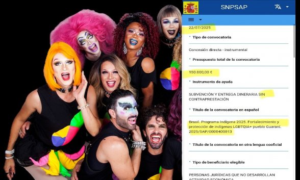 En la entrega de hoy el Gobierno de Sánchez ha destinado 150.000 euros a un proyecto cultural en Brasil: "Programa Indígena 2025. Fortalecimiento y protección de Indígenas LGTBIQIA+ del pueblo guaraní".