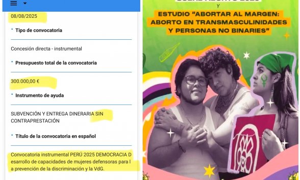 La ayuda se entregó en agosto mediante concesión directa y sin contraprestación, enmarcada en la convocatoria titulada «Perú 2025 Democracia. Desarrollo de capacidades de mujeres defensoras para la prevención de la discriminación y la violencia de género».