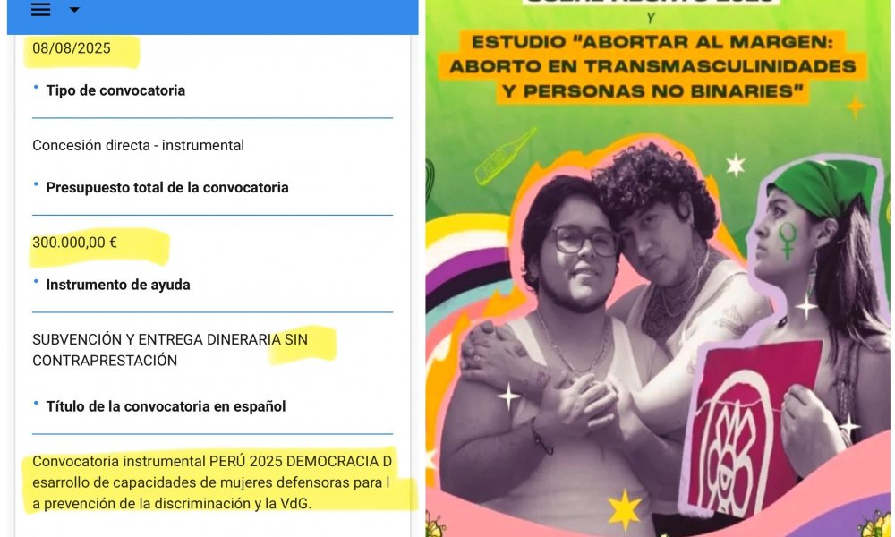 El exdiputado Pablo Cambronero en X ha sido quién ha dado con la ayuda, DEMUS es una organización que lleva a cabo proyectos relacionados con el aborto, entre sus trabajos recientes están las investigaciones sobre aborto en colectivos como las "transmasculinidades" y las "personas no binarias". ¿Recuerdan el acto que montó Sánchez en Sevilla para reivindicar los fondos para el desarrollo? Decía que eran necesarios y vitales... pues esto es el desarrollo.
