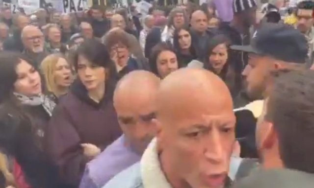 Y esta es la 'cariñosa acogida' que recibió de parte los que manifestantes que acompañaban a la dirigente de Podemos: