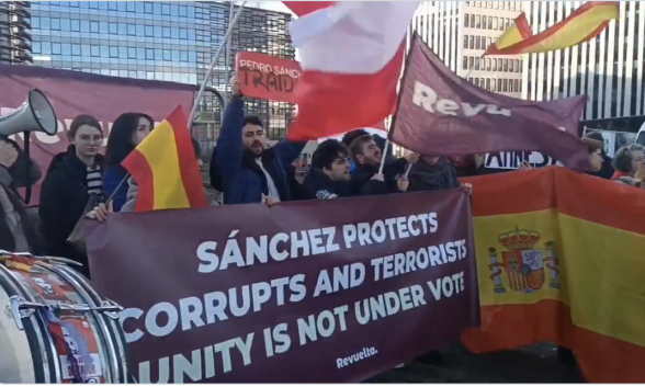 Patriotas esperando al golpista Pedro Sánchez frente al Parlamento Europeo de Estrasburgo para denunciar su golpe de estado y la ley de Amnistía que rompe la igualdad ante la ley de los españoles y genera más desigualdad territorial. pic.twitter.com/V1HbJ6D7lU