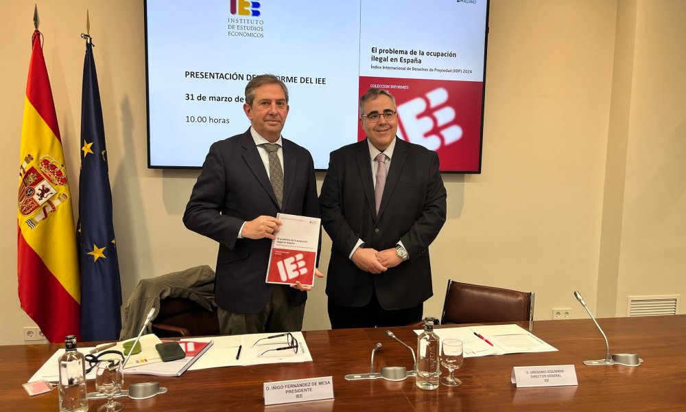 El presidente del Instituto de Estudios Económicos, Íñigo Fernández de Mesa, y su director general, Gregorio Izquierdo, han presentado el informe “El problema de la ocupación ilegal en España. Índice Internacional de Derechos de Propiedad (IIDP) 2024”, elaborado y publicado por la Property Rights Alliance, que el IEE difunde en España. En esta nueva edición han participado Matilde Cuena Casas, Catedrática de Derecho Civil de la Universidad Complutense de Madrid; y Vicente Pérez Daudí, Catedrático de Derecho Procesal de la Universidad de Barcelona.