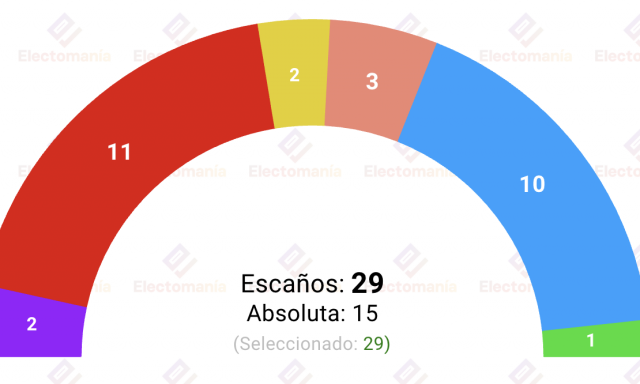 En Las Palmas de Gran Canaria, la mayoría absoluta se sitúa en los 15 escaños, de un total de 29.