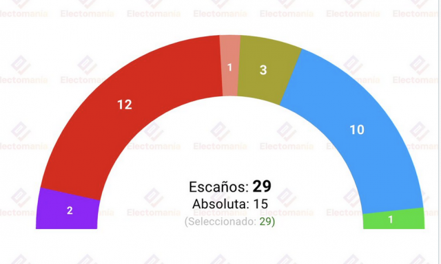 En Las Palmas de Gran Canaria, la mayoría absoluta se sitúa en los 15 escaños de un total de 29.