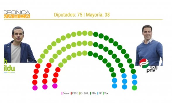 De un total de 75 diputados, la mayoría absoluta se sitúa en 38. Actualmente gobierna el país Vasco una coalición entre PNV (31) y PSOE (10).