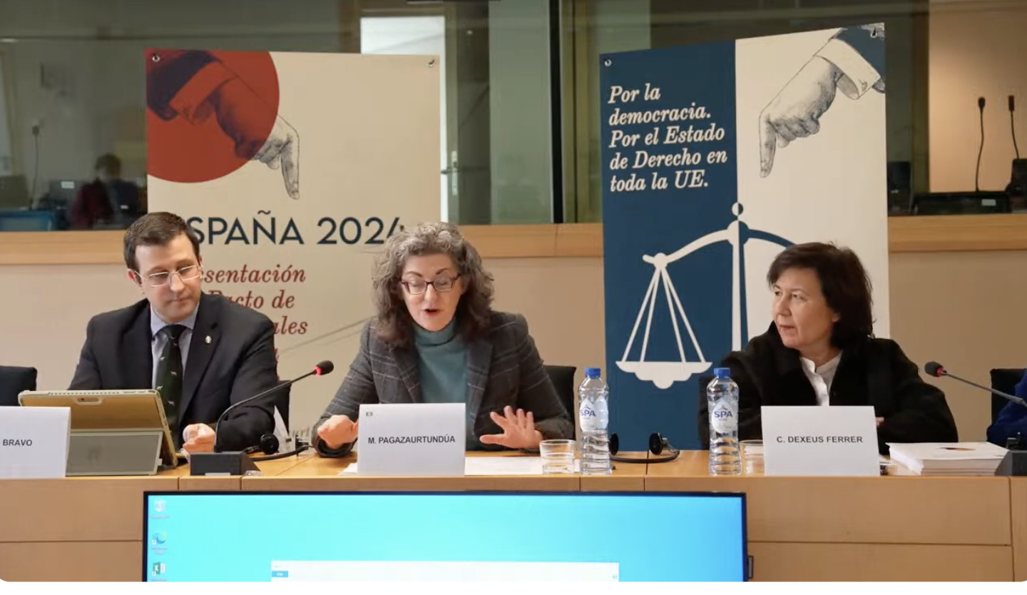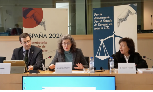 Representantes de numerosas asociaciones de profesionales de la justicia españoles realizaron ayer un acto en el Parlamento europeo en defensa del Estado de Derecho en España, que consideran amenazado por la próxima aprobación de la ley de amnistía a los delincuentes (muchos de ellos políticos) del 'procés' independentista catalán.