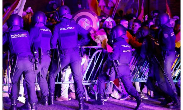 Apenas hacía una horas que Pedro Sánchez, tras inclinarse, sumiso, antes los nacionalistas catalanes y vascos, había sido reelegido como presidente del Gobierno por otros cuatro años. Los antidisturbios cargaban contra los manifestantes ante la sede socialista de Ferraz con inusitada violencia. Violencia de la Policía Nacional, me refiero, no de los manifestantes.