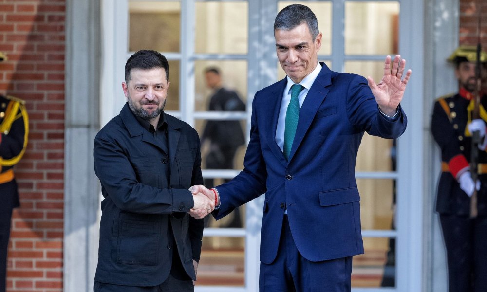 El presidente ucraniano Volodimir Zelenski ha visitado España y ha conseguido que Sánchez le done 615 millones de euros para armas y 200 para la reconstrucción del país.