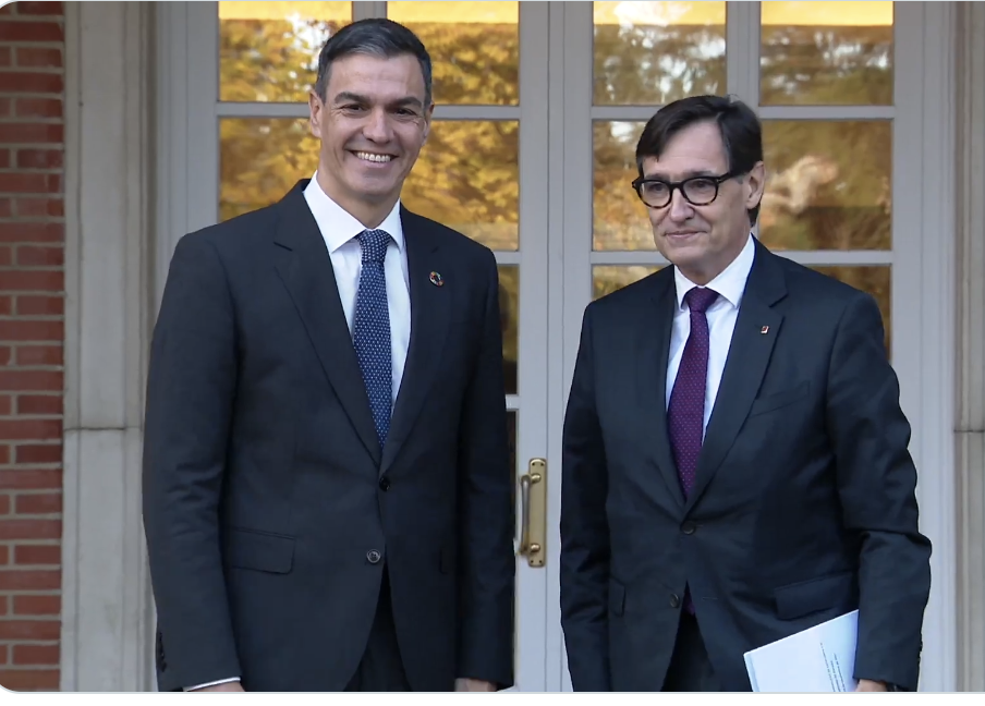 El jefe del Ejecutivo, @sanchezcastejon, continúa la ronda de reuniones con los presidentes y presidentas de comunidades y ciudades autónomas en La Moncloa, y recibe al president de la Generalitat de Catalunya, @salvadorilla. pic.twitter.com/yFL9N5NfVe